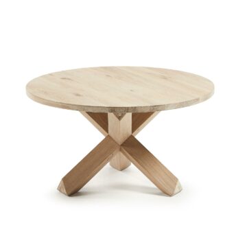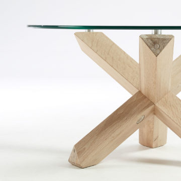 Okrogla Steklena klubska mizica Nori se odlikuje s sodobnim dizajnom, zlasti vidnem v podnožju oblike x, in kakovostno izdelavo iz masivnega lesa hrasta. K elegantnemu videzu bistveno prispeva odtenek beljenega hrasta. Izbirate lahko mizino ploščo; dobavljivi sta plošča iz kaljenega stekla, MDF v beli mat barvi, ter v celoti v masivnem hrastu.