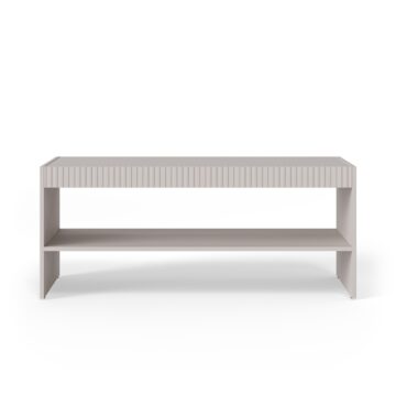 Značilnost klubske mizice PAXOS so njene utorjene sprednje strani v odtenku kašmirja, ki ji dajejo edinstven, razkošen videz. Nežni utori na površini zgornjega dela subtilno pritegnejo pogled in poudarjajo minimalističen, a prefinjen slog. Kontrastne črne kovinske noge dajejo obliki lahkotnost in sodoben značaj, hkrati pa zagotavljajo stabilnost in vzdržljivost.