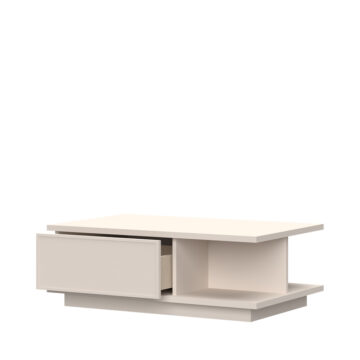 Klubska mizica iz kolekcije Radda Opera je popolna izbira za sodoben in eleganten dnevni prostor. Z dimenzijami 104 cm širine, 36 cm višine in 65 cm globine ponuja prefinjen dizajn z visokokakovostno izdelavo. Lakirana v nežnem mat UV laku v barvi Kašmir, z notranjostjo v dekorju Textil in okrasnim profiliranim okvirjem na predalu, prinaša stil in funkcionalnost. Mehko zapiranje predala s skritimi drsniki omogoča tiho delovanje, medtem ko robustna konstrukcija zagotavlja trpežnost.