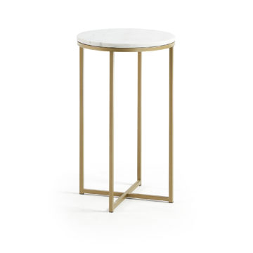 Elegantno oblikovana klubska mizica Sheffield je izdelana iz marmorja in kovinske strukture. Sodobna jeklena strukutra je kontrastične zlate barve. Marmorna plošča je okrogle oblike, premera pa se med različicama razlikujeta. Mizino vzdrževanje in čiščenje je zelo enostavno. Dobavljiva je v dveh dimenzijah.