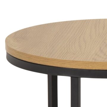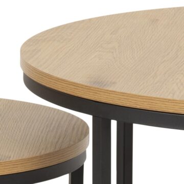 Prikupen in funkcionalen set klubski miz Spiro je zasnovan za sodobne domove, kjer sta stil in praktičnost ključna. S svojo elegantno mat površino v videzu divjega hrasta in črnimi okvirji iz praškasto prevlečenega jekla, ta set dodaja industrijski pridih vsakemu prostoru. Okrogla oblika miz ne samo, da prinaša eleganco, ampak tudi omogoča prilagodljivost – mize lahko prekrivate za prihranek prostora ali jih uporabite ločeno, ko gostite prijatelje in družino.