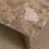 - Unikatni materiali: Izdelana iz latte rjavega turškega marmorja, kjer se barva, struktura in površina naravno razlikujejo, kar vsaki mizi daje edinstven značaj.