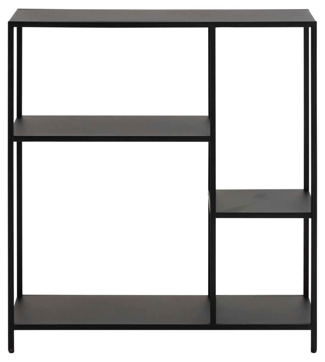 Knjižna polica Newcastle prinaša edinstven industrijski slog, ki bo obogatil vsak prostor. S svojo črno kovinsko konstrukcijo in asimetričnimi policami, ta polica ponuja tako funkcionalnost kot estetsko vrednost.