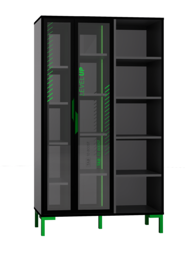 Knjižni poličnik s steklenimi vrati Gaming Plus je poseben kos pohištva, ki igralčev svet spremeni v pravi oder. Steklena vrata ustvarijo najprivlačnejši kotiček igralne sobe, kjer vsaka figura in zbirateljski predmet zasijeta kot muzejski eksponat. Ko se dnevna svetloba umakne, RGB LED osvetlitev napolni notranjost knjižnega poličnika z barvami po vaši izbiri, kar ustvarja svetlobno predstavo, ki odseva energijo digitalnih svetov. Gaming ni le knjižna polica, temveč vitrina v vaši igralnici, kjer lahko shranite svoje zgodbe in jih na impresiven način razstavite v svojem prostoru.