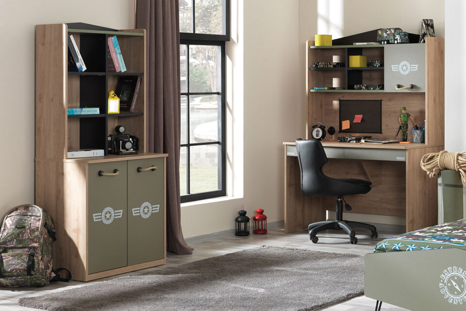 Knjižni poličnik iz kolekcije Kamp je zasnovan kot multifunkcionalna in estetsko privlačna rešitev za shranjevanje knjig, igrač, in drugih dragocenosti v mladinskih in otroških sobah. S svojim edinstvenim dizajnom, ki spominja na avanturistični duh kampiranja, poličnik prinaša občutek narave in pustolovščine v vsak dom.
