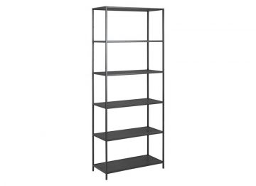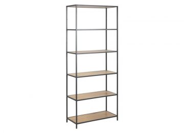 Knjižni poličnik Seaford je na voljo tudi s 4 policami, oplemenitena iverna plošča je zaščitena z melaminom in na voljo v dveh odtenkih: črni jesen in divji hrast. Ogrodje je črno in kovinsko. Poličnik je kljub velikosti zelo lahko prenosljiv.