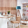 Knjižni poličnik Tina se ob vizualni izpopolnjenosti, doseženi v združitvi lesa in elegantne bele, odlikuje še s prostorno zasnovo. Ima tri police in predal, delujoč na sistem tihega zapiranja. Izpostaviti velja tudi precizno izdelane ročaje in nogice, ki doprinašajo k še bolj edinstvenem in avtentičnem videzu. Izdelan je iz oplemenitene iverne plošče, zaščitene z ABS robnim trakom.