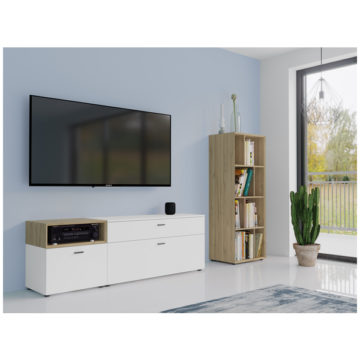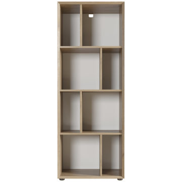 Regal s svojimi osmimi razdelki nudi veliko prostora za shranjevanje knjig in ostalih stvari. Na voljo je v barvi hrasta. Zaščiten je z melaminom, ki je odporen na prah in praske.