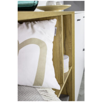 Knjižni regal se odlično poda hodniku, dnevni sobi in ostalim prostorom. Priložene ima nastavke s katerim ga lahko obesimo na zid. Na razpolago je v barvi hrasta. Zaščiten je z melaminom, ki je odporen na prah in praske.