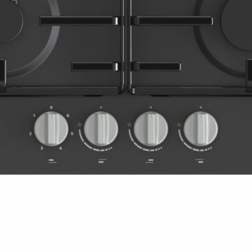 Ta kuhalna plošča vključuje varovane plinske gorilnike za varno uporabo, ergonomske gumbe za enostavno upravljanje in emajlirane nosilne plinske rešetke, ki so trpežne in enostavne za čiščenje. Kuhalna plošča je črne barve, kar se lahko prilagaja različnim kuhinjskim slogom.