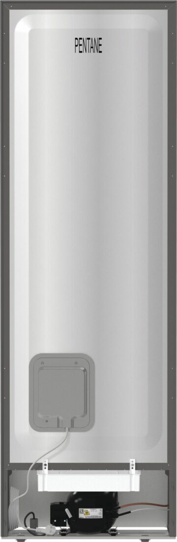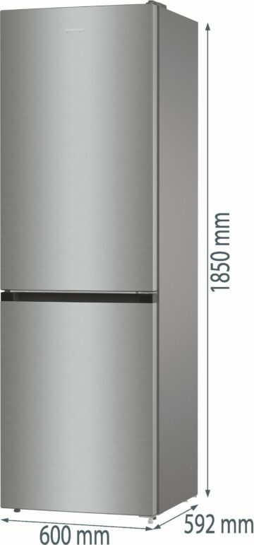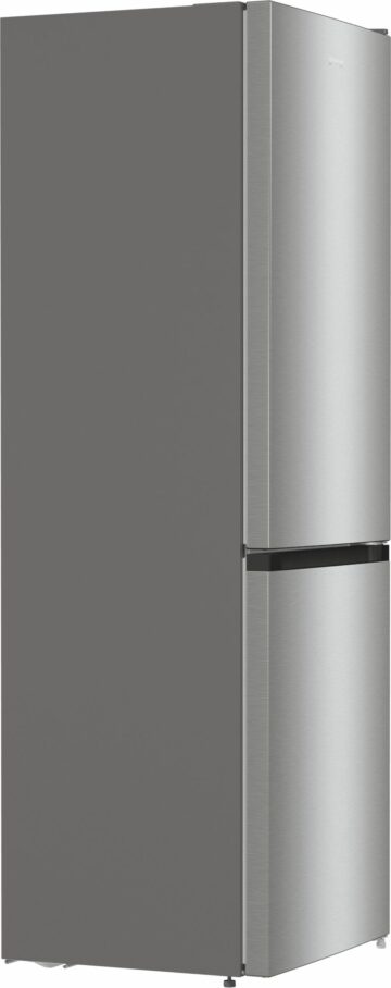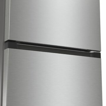 Hladilnik z energijskim razredom F ima ocenjeno letno porabo energije 301,99 kWh in nivo hrupa 38 dB, kar omogoča tiho delovanje in prijetno bivalno okolje. Material vrat je iz kolaminirane pločevine, barva izdelka pa je metalizirano siva z vrati v temno sivo česanem nerjavnem jeklu, kar daje hladilniku eleganten in sodoben videz.