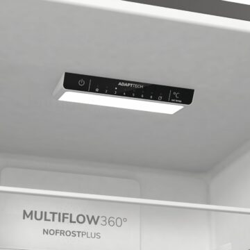 Napredna tehnologija AdaptTech hlajenja z inteligentnim sistemom pomnjenja ter IonAir s funkcijo MultiFlow 360° skrbita za enakomerno porazdelitev temperature in svež zrak v hladilnem prostoru. NoFrost Plus preprečuje nastanek ledu in zmanjšuje potrebo po rednem odtaljevanju.
