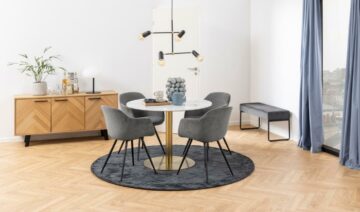 - Praktičnost: Noge iz črnega lakiranega hrastovega furnirja so opremljene z nastavljivimi nogicami za stabilnost na različnih površinah.