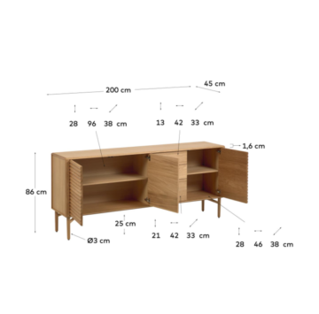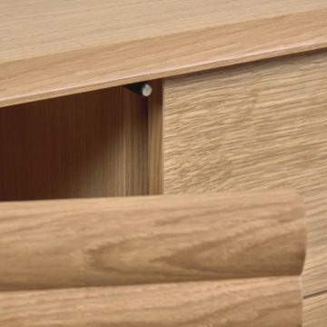 Komodo Lenon odlikuje naraven in minimalističen dizajn. Deloma je izdelana iz masivnega lesa hrasta, deloma pa iz MDF plošče, oblečene v hrastov furnir. Dobavljiva je v dveh različicah, večja ima ena vrata več, obe imata po tri predale in dve polici.