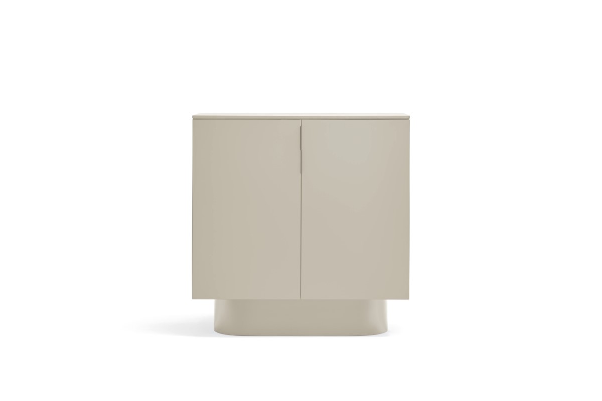 Manjša komoda Totem se ponaša z monolitno estetiko, ki jo postavlja na prehod med pohištvom in umetniško skulpturo. S svojo kompaktno, a prostorno zasnovo združuje sodoben videz in funkcionalnost, zaradi česar je idealna izbira za spalnice, dnevne sobe ali hodnike.
