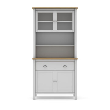 Ta model kredence Misti vključuje dvoja steklena vrata, dvoja odlagalna predela in dvoja vrata, kar nudi obilico možnosti za shranjevanje in razstavljanje predmetov. Dvoja steklena vrata omogočajo, da so razstavljeni predmeti, kot so knjige, okrasni predmeti ali posoda, vidni, hkrati pa zaščiteni pred prahom. Kombinacija bele barve in hrastovega lesa dodaja vitrini sodoben pridih, hkrati pa ohranja toplino in naravnost lesa.