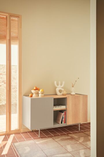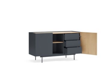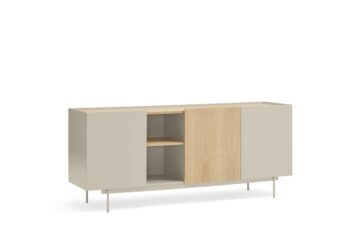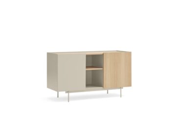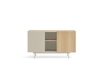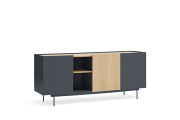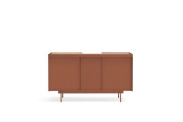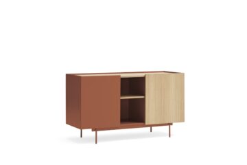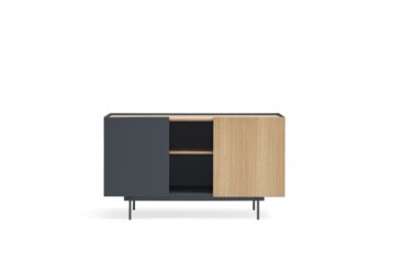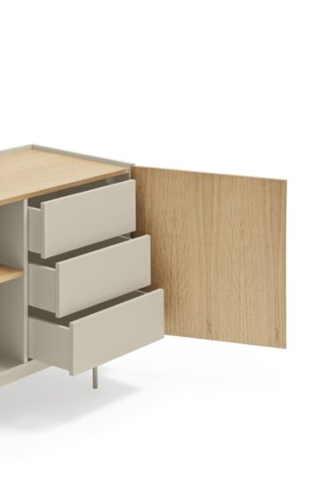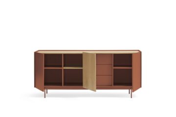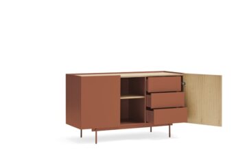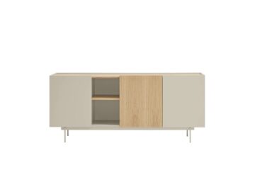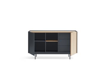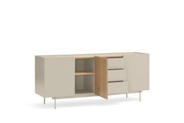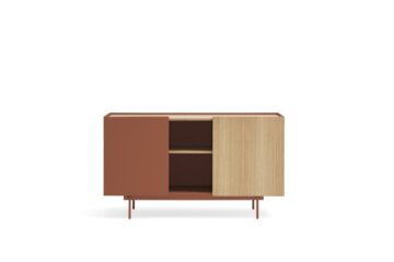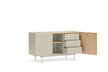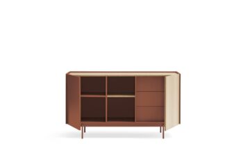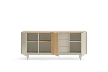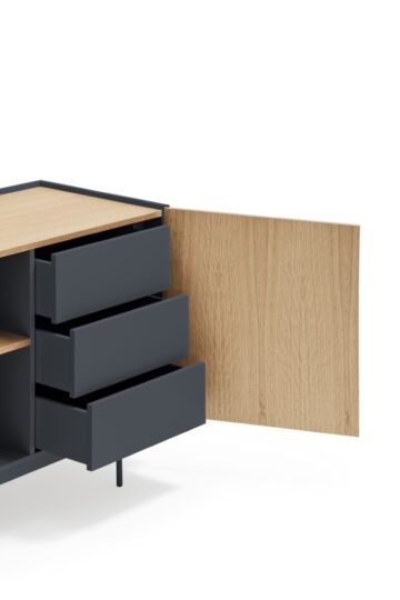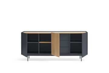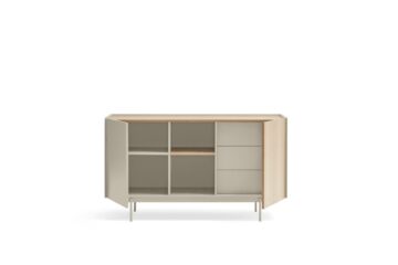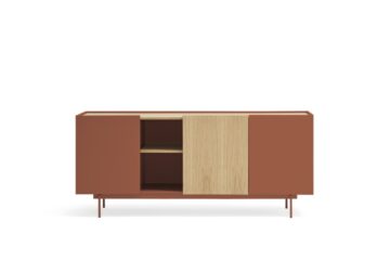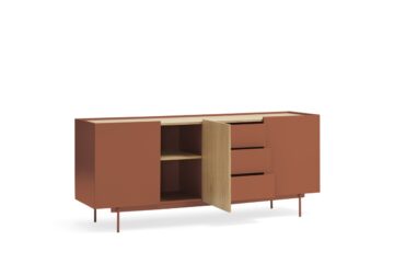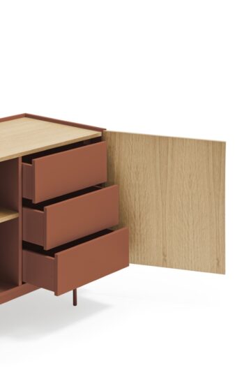 Komoda Otto združuje prefinjeno estetiko, funkcionalnost in prilagodljivost. Barvni poudarki v kombinaciji z naravnimi detajli furnirja prinašajo eleganco v vsak prostor, medtem ko različne shranjevalne enote zagotavljajo praktičnost. Na voljo je v dveh različnih dimenzijah, kar omogoča prilagoditev tako manjšim kot večjim prostorom.