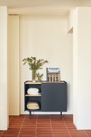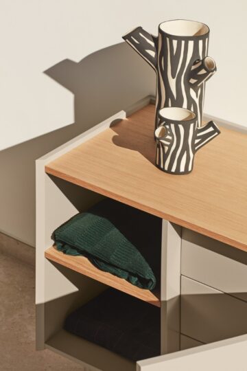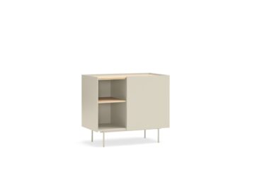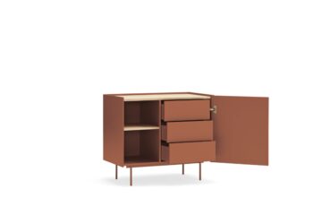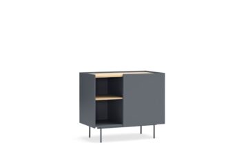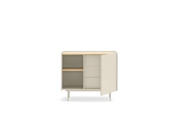 Komoda Otto združuje minimalističen dizajn s funkcionalnostjo, kar jo naredi popolno izbiro za sodobne interiere. S kombinacijo barvnih poudarkov in naravnih detajlov furnirja vnaša eleganco v vsak prostor, hkrati pa zagotavlja praktično in prilagodljivo shranjevanje.