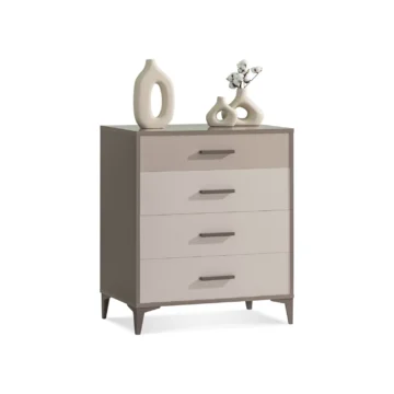 Predali so izdelani iz kakovostne 18 mm iverne plošče, dno predalov pa iz 4 mm plošče, z nosilnostjo do 25 kg. Teleskopski sistem vodil omogoča enostaven dostop do dna predalov, kar olajša organizacijo. ABS ročaji so trpežni in zdravi za uporabo, komoda pa je izdelana iz prvovrstne 18 mm iverne plošče s certifikatom E1 za dolgotrajno vzdržljivost. 12 cm visoke ABS noge omogočajo uporabo z robotskim sesalnikom, kar prispeva k lažjemu vzdrževanju čistoče.