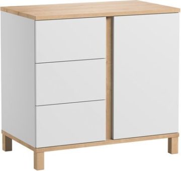 Previjalna komoda je nepogrešljiv kos dojenčkovega doma. Z ergonmičnosto pokrbi, da je previjanje v veslje tako dojenčku kot staršema. Omogoča dragocne trenutke vzpostavljanja bližine z otrokom in daje odlično priložnost za komunikacijo. Komoda “raste” z otrokom, saj jo lahko uporbljamo tudi potem, ko ga nehamo previjati in postane samostojen pri opravljnju potreb. Enostavno odstranimo previjalno ploščo in uporabljamo le komodo. Ima tri tri predale in ena vrata, dobavljiva pa je v beli in antracit barvi.