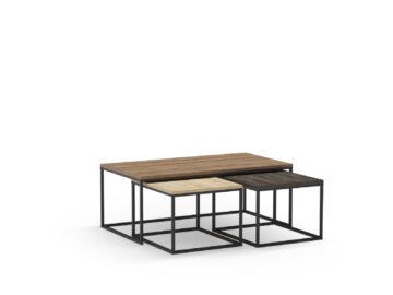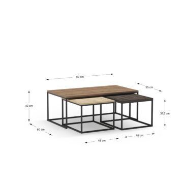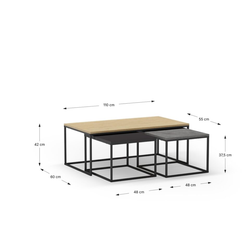 Komplet treh klubskih mizic Camelia v kombinaciji naravne in sive barve je praktična in estetsko dovršena rešitev za sodobne dnevne sobe. Z različnimi višinami in možnostjo zlaganja ena pod drugo ponujajo prilagodljivost za vsak prostor.
