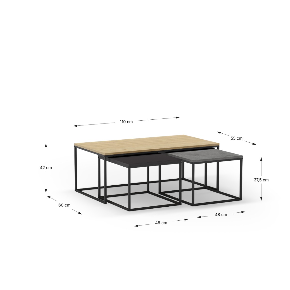 - Dimenzije večje mizice: 110 x 60 x 41,8 cm