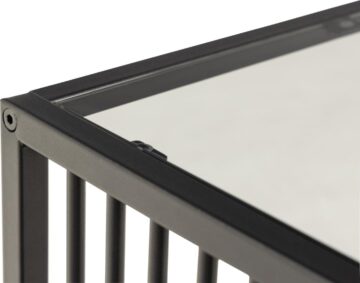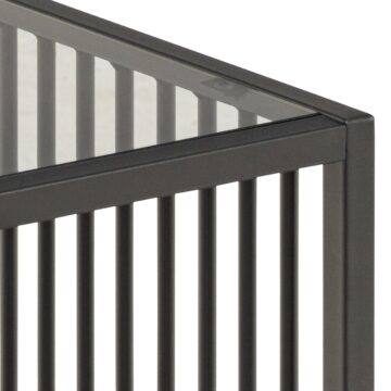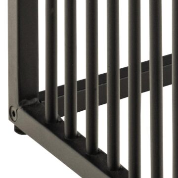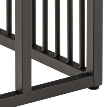 - Osnova: Črn prašno lakiran jekleni okvir z vertikalnimi kovinskimi letvami
