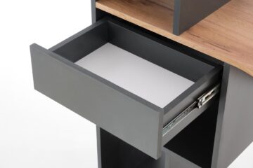Konzolna miza CONTI je izdelana iz iverala. Miza ima več odlagalnih površin ter en predal.