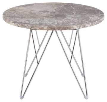 - Materiali: Vrh iz mat sive-rjavega marmorja, žično podnožje iz kromiranega jekla