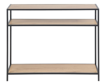 Konzolna miza Seaford vsebuje police izdelane iz divjega hrasta, ogrodje je kovinsko in prašno obarvano v črno barvo. Konzolna miza je nadvse priročna in zelo zaželen kos pohištva v vsakem prostoru.