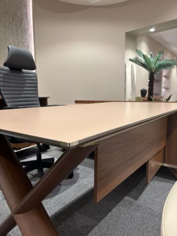Kotna direktorska pisarniška miza Vino je zasnovana z inovativnim slogom in dinamičnimi linijami, ki na novo definirajo vodstvene pisarne. Združuje funkcionalnost, estetiko in napredno tehnologijo za sodobne vodje, ki cenijo organiziranost in eleganco.