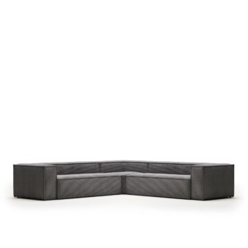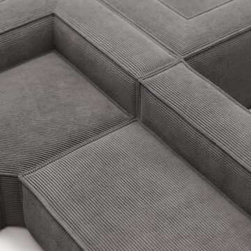 Kotna garnitura Blok v sivi barvi – 320 x 320 cm je moderen kos pohištva, oblečen v sivi žametni rebrast material, ki ne le da pritegne pogled, temveč nudi tudi izjemno udobje. Dimenzije garniture omogočajo prostorno sedenje, medtem ko mehko polnilo odlično podpira pri sprostitvi po napornem dnevu.