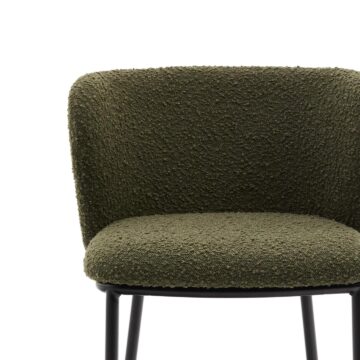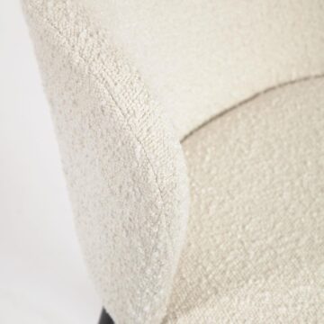 Ciselia barski stol je zasnovan za maksimalno udobje s sodobnimi linijami in stilsko dovršenostjo. Njegova mehka bouclé tkanina, ki je ena izmed najbolj priljubljenih trendov, doda prostoru toplino in eleganco, kar vsako priložnost naredi posebno.