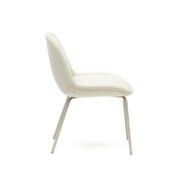 - Bela bouclé tkanina z bež mat jeklenimi nogami