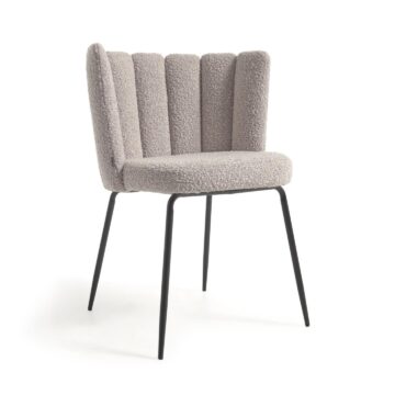Kovinski jedilniški stol Aniela predstavlja vrhunec udobja in sodobnega oblikovanja. Njegova luksuzna bouclé tkanina, znana po svoji izjemni mehkobi, je v trendu notranjega oblikovanja in doda pridih elegance vsakemu prostoru. Kokonska tubularna zasnova stola ustvarja prijeten objem, kar ga dela idealnega za dolge večerje ali sproščujoče trenutke v dnevni sobi.