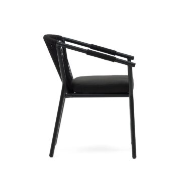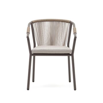 Kovinski nalagalni jedilniški stol Xelida prinaša sproščen in eleganten videz, zahvaljujoč ročno tkani vrvi na naslonjalu, ki omogoča udobno in prijetno sedenje. Idealna izbira za dolge večere na balkonu, terasi ali v vrtu, saj stol združuje funkcionalnost z estetiko.