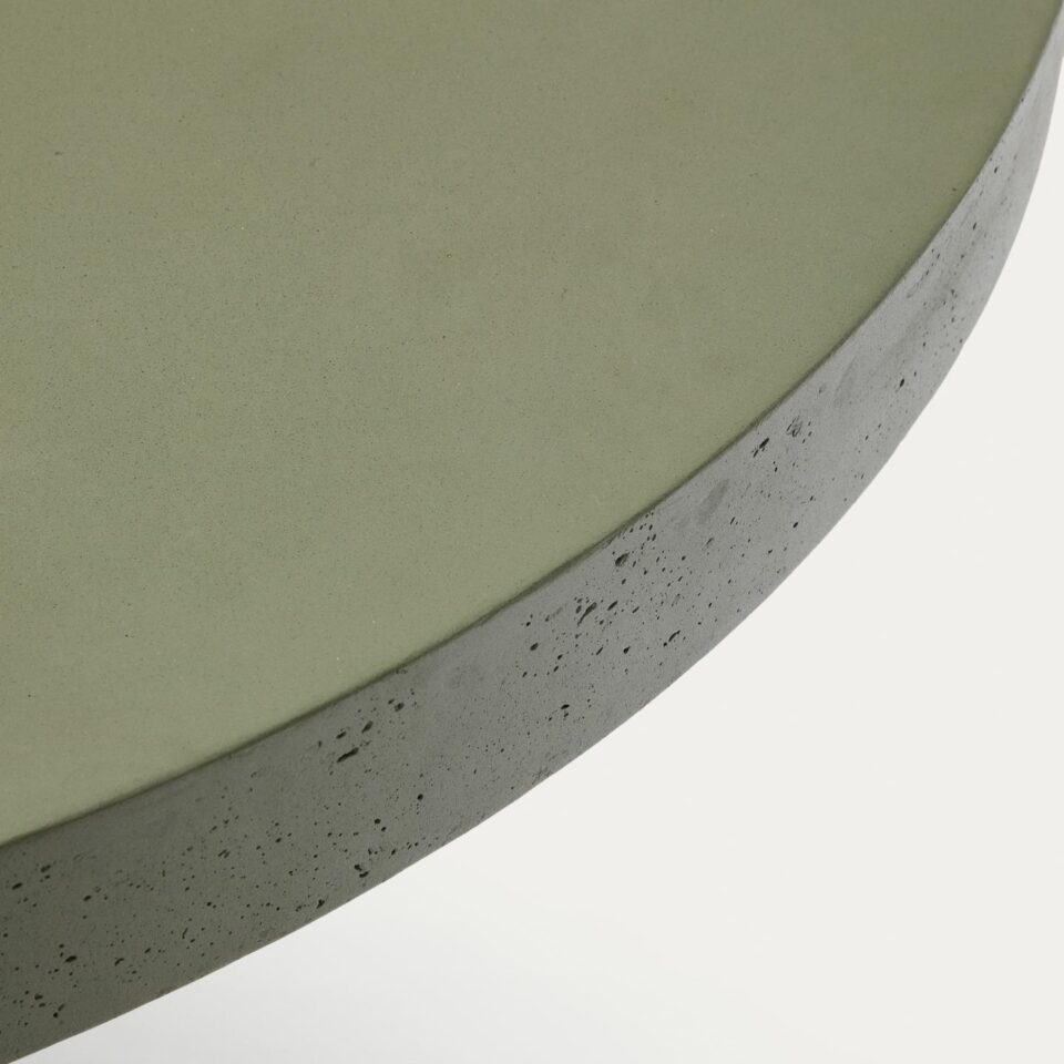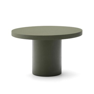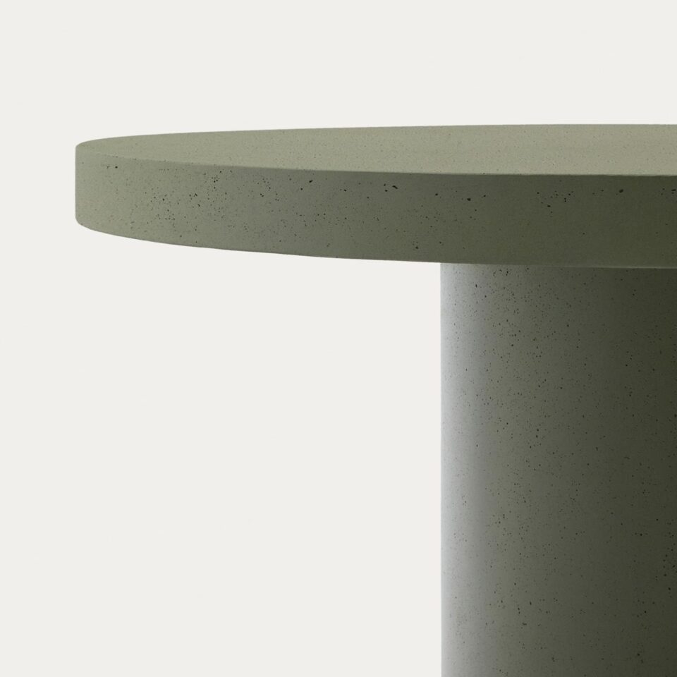 Okrogla miza Aiguablava v temno zeleni barvi premera 120 cm združuje funkcionalnost in vrhunski dizajn. Navdihnjena z minimalizmom in čistimi linijami postane osrednji element vsakega prostora ter prostoru doda izrazito osebnost, tako v notranjih kot zunanjih ambientih. Izdelana je cementa, ojačanega s steklenimi vlakni, ki se odlikuje po odpornosti na vremenske vplive, manjši teži in dolgi življenjski dobi. Vsaka miza Aiguablava je unikat, zasnovan za dolgotrajno uporabo brez izgube prvotnega videza.