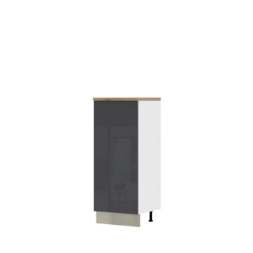 Barva korpusa je bela. Vrata imajo vgrajen mehanizem tihega zapiranja. Vse okovje je priznanega proizvajalca Hettich. Fronte iz MDF so lakirane z najnovejšo tehnologijo UV lakiranja s katero dosežejo visoko stopnjo sijaja- 99,70%. Ta tehnologija lakiranja omogoča štirikrat boljšo odpornost proti fizičnim udarcem in obrabo, kot standardni lak. Delovno ploščo debeline 4cm lahko izbirate med naslednjimi barvami: