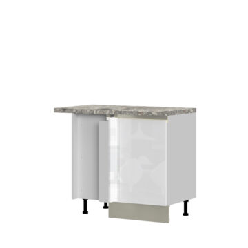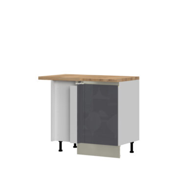 Kuhinjska spodnja kotna omarica Infinity je izdelana iz kvalitetne oplemenitene plošče, debeline 18mm. Fronte pa so izdelane iz MDF in lakirane z UV tehnologijo. Kuhinja je modernega izgleda in čistih linij. Delovna plošča proizvajalca Egger in podnožje s tesnilom vključeno v ceni. Fronte lahko izbirate v več barvah: