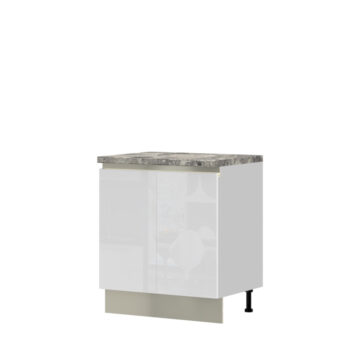 Barva korpusa je bela. Vrata imajo tiho zapiranje . Fronte iz MDF so lakirane z najnovejšo tehnologijo UV lakiranja s katero dosežejo visoko stopnjo sijaja- 99,70%. Ta tehnologija lakiranja omogoča štirikrat boljšo odpornost proti fizičnim udarcem in obrabo, kot standardni lak. Delovno ploščo debeline 4cm lahko izbirate med naslednjimi barvami:
