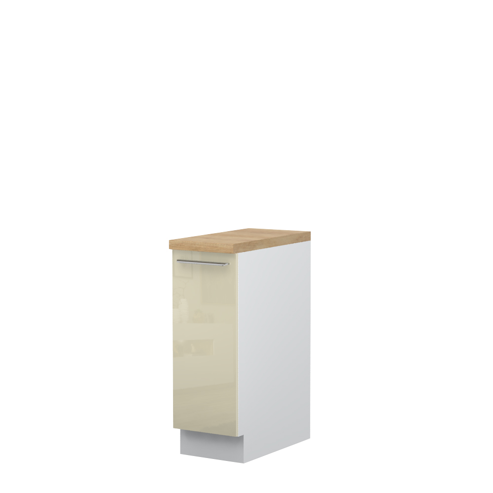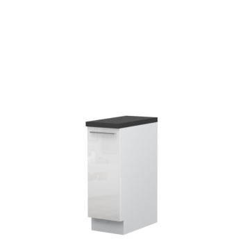 Kuhinjska spodnja omarica širine 30cm Riva z vrati in dvema odlagalnima policama. Vrata imajo mehanizem tihega zapiranja. Izdelana je iz oplemenitene plošče, debeline 18mm. Kuhinja je modernega izgleda in čistih linij. Delovna plošča in podnožje vključena v ceno. Ročaji ob doplačilu. Fronte lahko izbirate v dveh barvah: