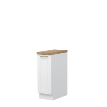 Program kuhinj Tara združuje moderni in rustikalni stil. Spodnja kuhinjska omarica širine 40 cm z vrati. Profilirane fronte lahko izbirate v grafit sivi ali beli barvi. Barva korpusa je bela. Predali imajo tiho zapiranje in vodila Hettich. Fronte iz MDF so lakirane z najnovejšo tehnologijo UV mat lakiranja na vodni osnovi s katero dosežejo visoko stopnjo sijaja- 99,70%. Ta tehnologija lakiranja omogoča štirikrat boljšo odpornost proti fizičnim udarcem in obrabo, kot standardni lak. Delovno ploščo debeline 4cm lahko izbirate med naslednjimi barvami: