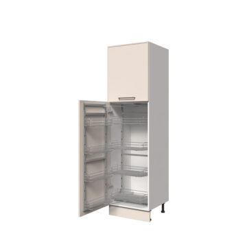 Ta izjemno praktičen kuhinjski element je idealna rešitev za shranjevanje kuhinjskih pripomočkov in živil. Opremljen je z naprednim mehanizmom iz kromirane žice, ki vključuje 4 manjše košare, nameščene na vratih, in 4 večje notranje košare, ki se ob odpiranju vrat pomaknejo naprej. Mehanizem omogoča lahek dostop in optimalen izkoristek prostora.