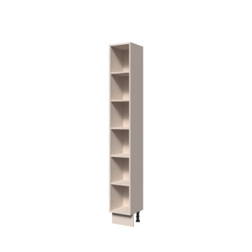 Kombiniran kuhinjski element širine 30 cm z odprtim dizajnom ponuja elegantno in praktično rešitev za shranjevanje. Zahvaljujoč UV lakirani površini v toplem kašmir mat odtenku se popolnoma zlije z ostalimi elementi kuhinje Opera in omogoča preprost dostop do vsakodnevno potrebnih stvari.