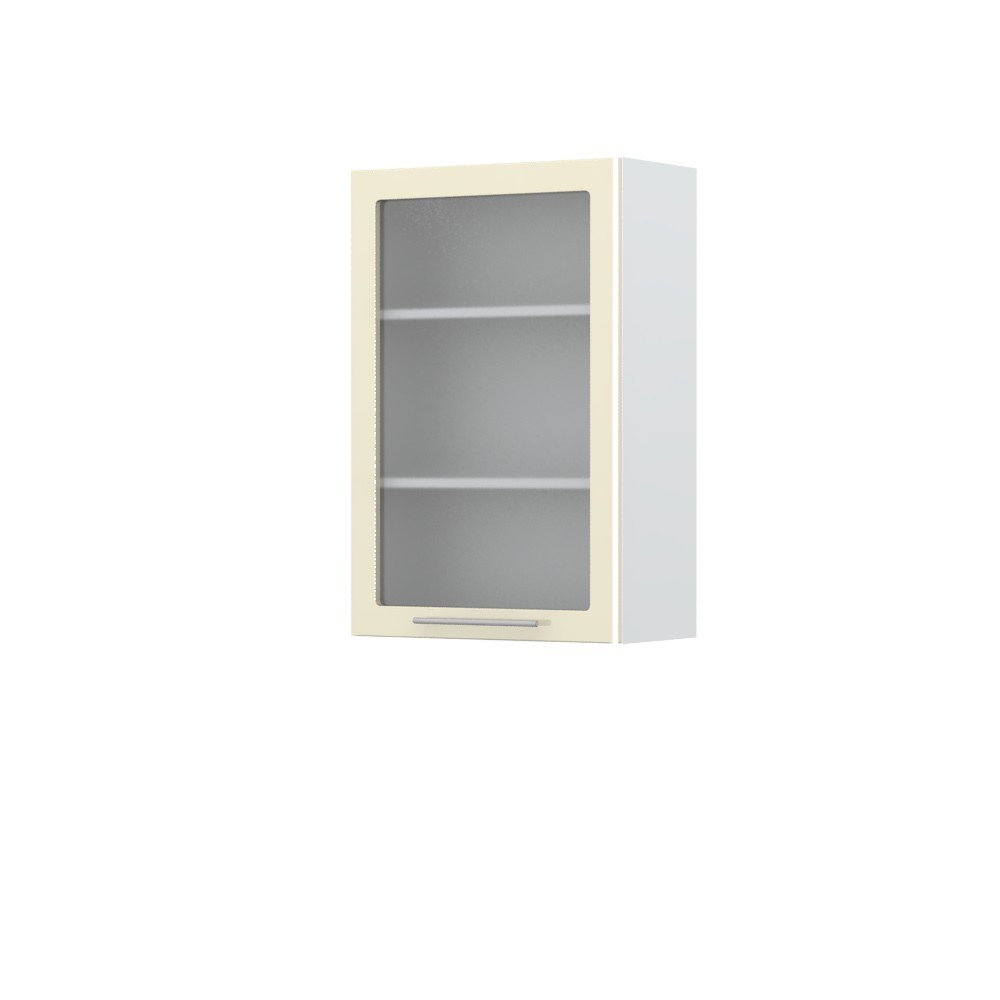 Kuhinjska zgornja omarica širine 60 cm Modern z enim vratnim krilom, zaobljenimi robovi in kaljenim steklom debeline 4mm. Okvir je izdelan iz mediapana in UV lakiran. Vrata imajo mehanizem mehkega zapiranja. Omarica ima dve polici. Ročaji za doplačilo. Fronte lahko izbirate v več barvah: