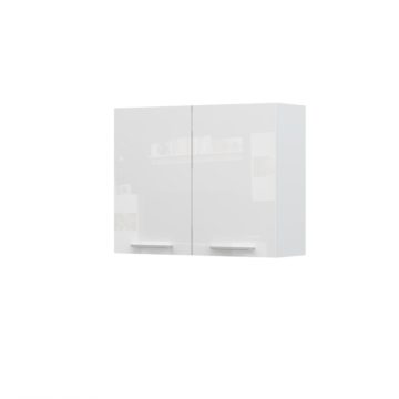 Kuhinjska zgornja omarica Riva širine 90 cm je narejena iz plošče debeline 18 mm, barva korpusa je bela. Omarica ima dvoje vrat z mehanizmom mehkega zapiranja in dve polici. Fronte lahko izbirate v dveh barvah: