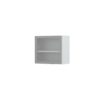 Kuhinjska zgornja omarica s steklom Riva je narejena iz oplemenitene plošče debeline 18 mm, bele barve. Omarica ima eno polico in ena vrata, ki imajo mehanizem mehkega zapiranja. Fronte so iz aluminijastega okvirja in kaljenega stekla debeline 4mm. Omarica ima vgrajeno ročko, ki je že vključena v ceno. Omarica je široka 60 cm in visoka 55 cm. Barva korpusa: