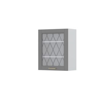 Kuhinjska zgornja omarica širine 60cm Tara z dvema policama. Izdelana je iz oplemenitene plošče, debeline 18mm. Okvir vrat je izdelan iz MDF-ja in profiliran v kombinaciji z kaljenim steklom.