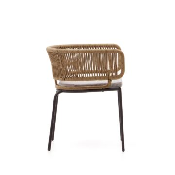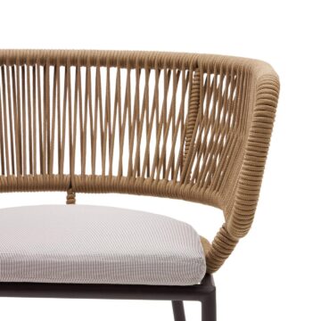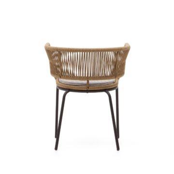 Lesen jedilniški stol Nadin združuje galvanizirano jeklo in ročno pleteno vrv. S temi materiali in barvo trenutka naredite stilno izjavo v svojih pokritih zunanjih prostorih.