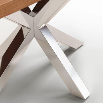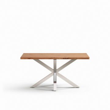 Miza Argo z naravno hrastovo furnirano ploščo in nogami iz nerjavečega jekla združuje sodoben dizajn, kakovostne materiale in brezčasno eleganco. Popolna izbira za družinska kosila, posebne priložnosti ali druženja s prijatelji, saj prostoru doda toplino lesa in modernost kovine.